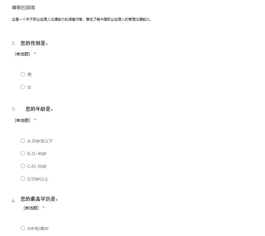 职业经理人沟通能力调查问卷
