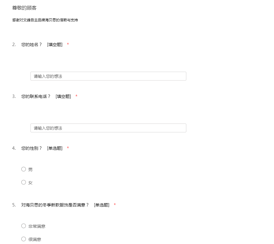 海贝思产品调查问券