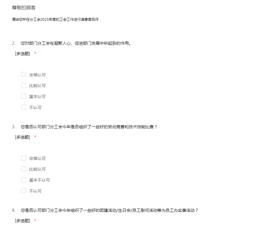 请给您所在分工会2015年度的工会工作进行满意度测评