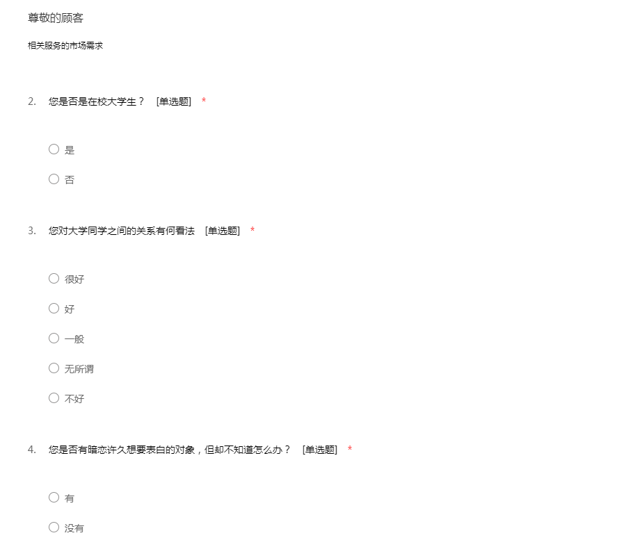 本次问卷调查意在了解当代大学生的恋爱实际情况,您的真实回答对我们来说十分宝贵!感谢您在百忙之中回答此卷!51调查网(我要调查网)谢谢您的参与。