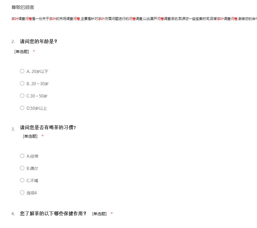 茶叶调查问卷是一份关于茶叶的市场调查问卷,主要是针对茶叶方面问题进行的问卷调查,以此展开问卷调查活动,耽误您一些宝贵时间,回答茶叶调查问卷,谢谢您的合作。