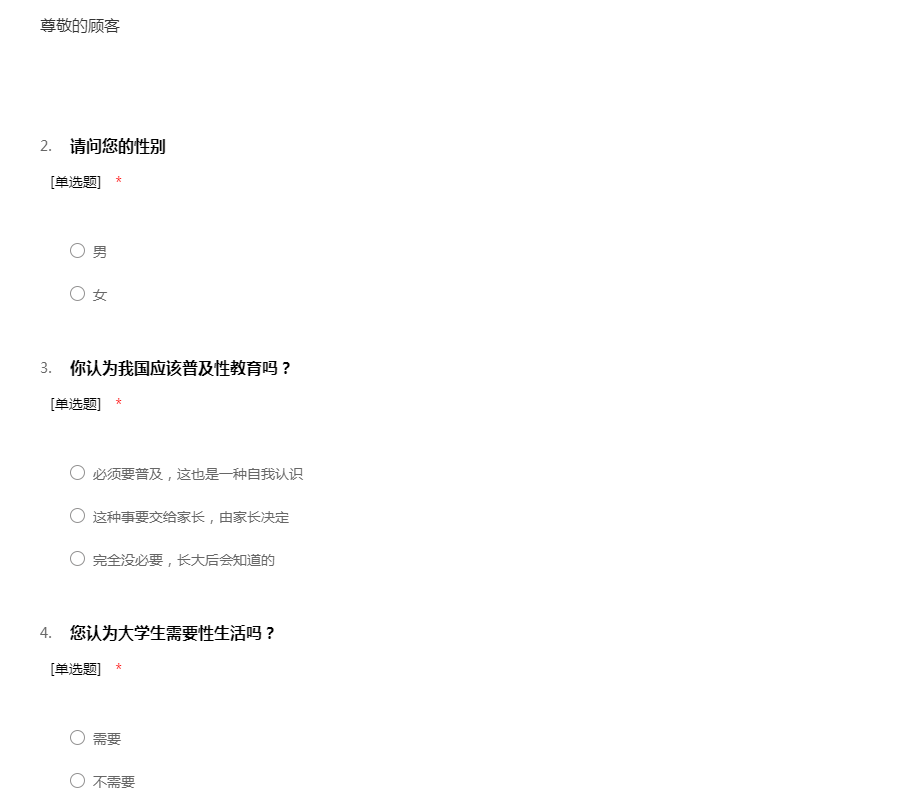 本次问卷调查意在了解当代大学生的恋爱实际情况,您的真实回答对我们来说十分宝贵!感谢您在百忙之中回答此卷!51调查网(我要调查网)谢谢您的参与。