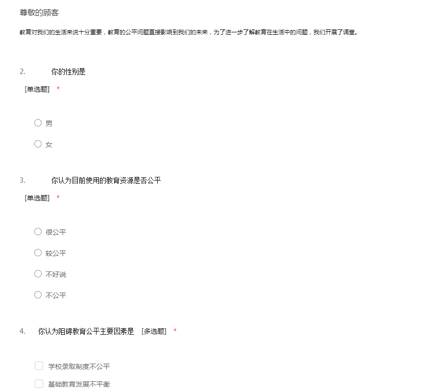教育对我们的生活来说十分重要,教育的公平问题直接影响到我们的未来,为了进一步了解教育在生活中的问题,我们开展了调查。