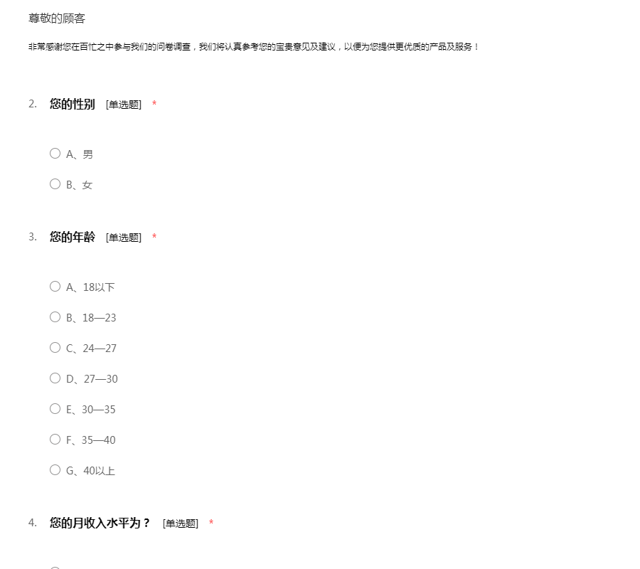 非常感谢您在百忙之中参与我们的问卷调查,我们将认真参考您的宝贵意见及建议,以便为您提供更优质的产品及服务!