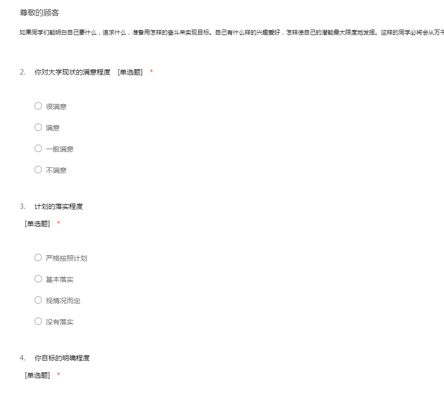 亲爱的同学:你好,我们是航空专业的学生,为了了解大学生行动力的情况,我们特此进行此次调查,希望你能抽出时间为我们完成这份问卷