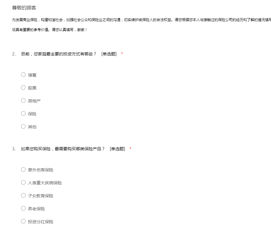 保险市场调查问卷