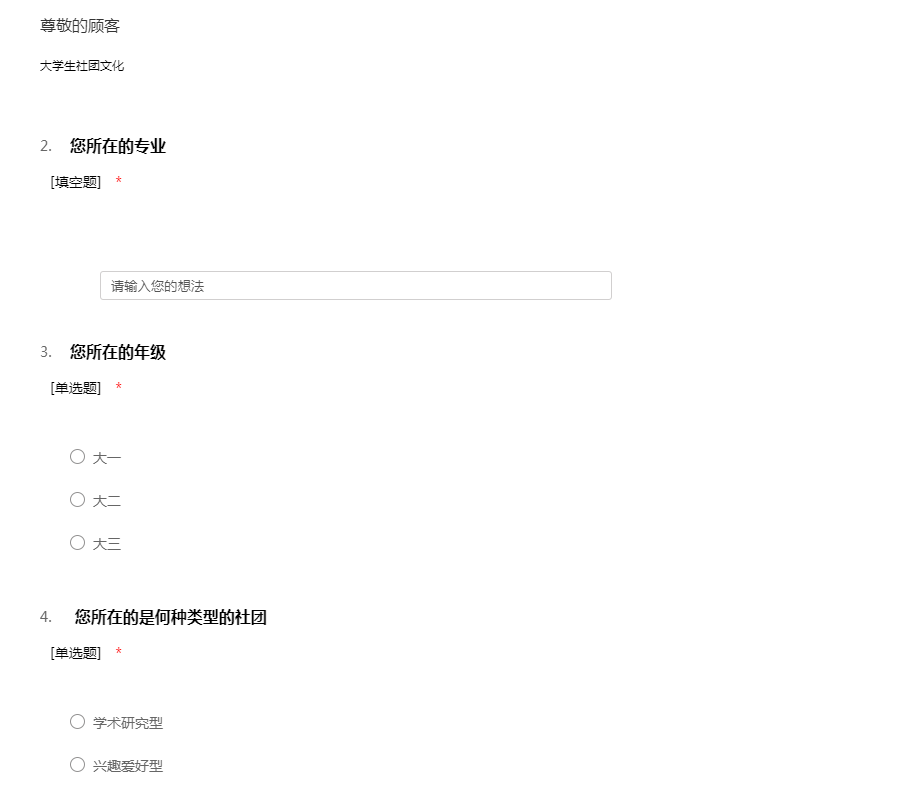此份问卷是为了调查一下在校大学生的消费行为,希望您能认真填写问卷,谢谢您的合作!51调查网(我要调查网)谢谢您的参与。