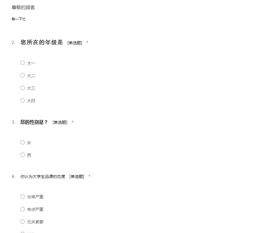 为了解当今大学生网络道德现状的具体情况,特此设计了这份大学生网络文明问卷调查。