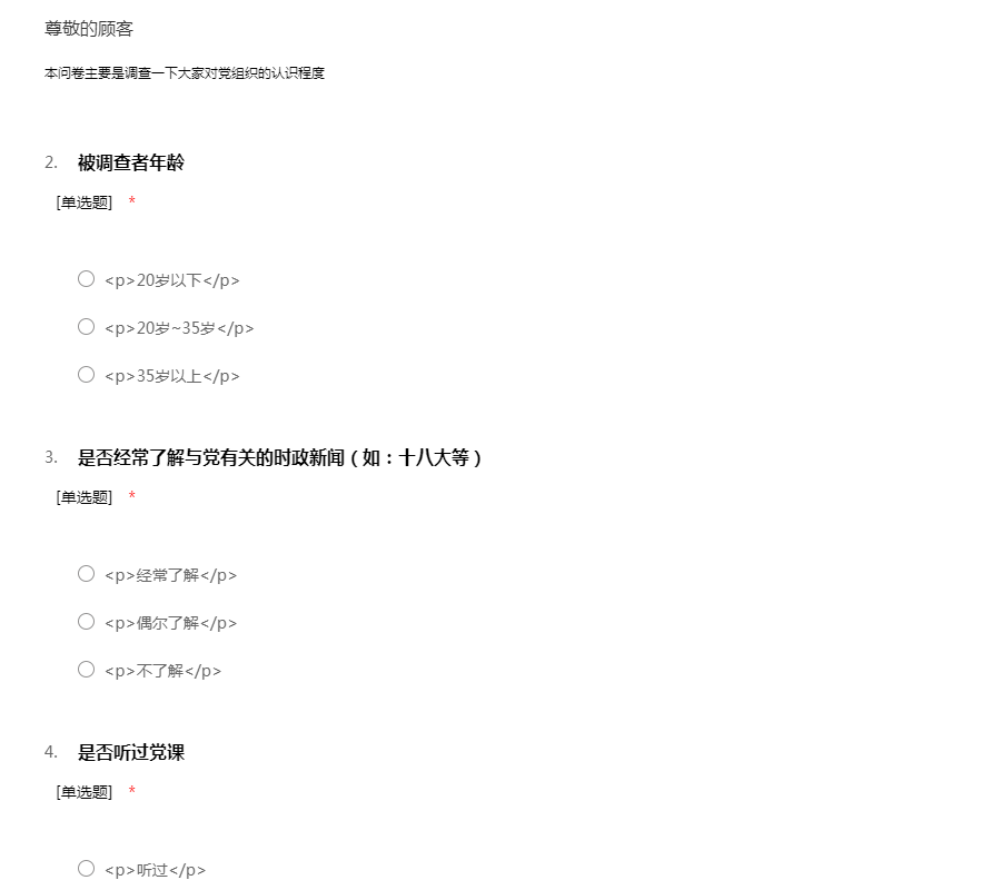 本问卷主要是调查一下大家对党组织的认识程度