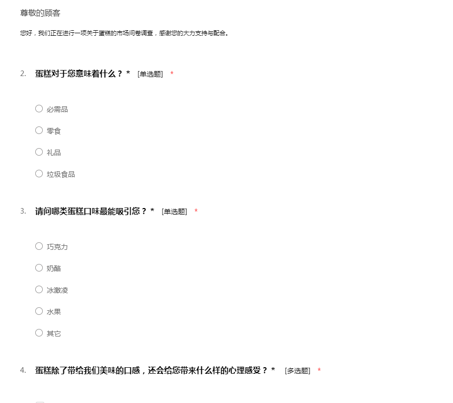 您好,我们正在进行一项关于蛋糕的市场问卷调查,感谢您的大力支持与配合。