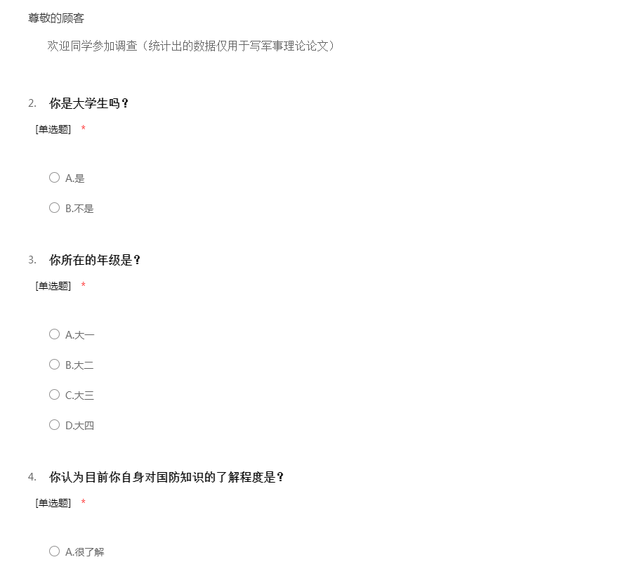 欢迎同学参加调查(统计出的数据仅用于写军事理论论文)