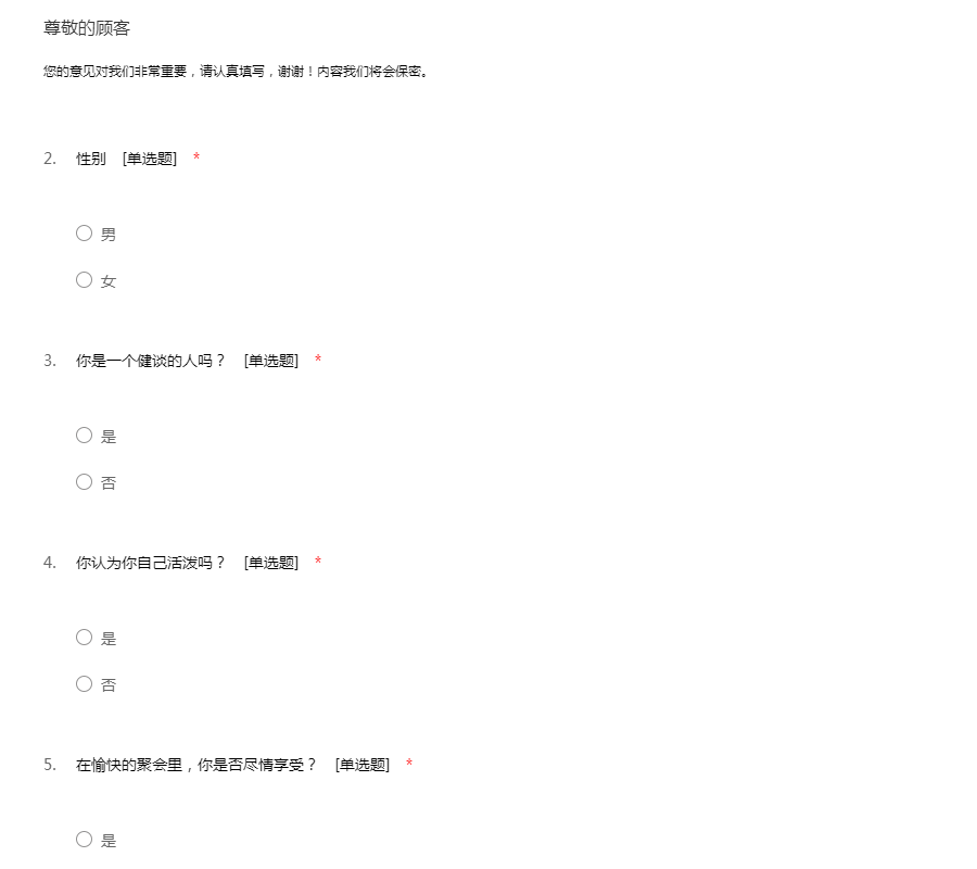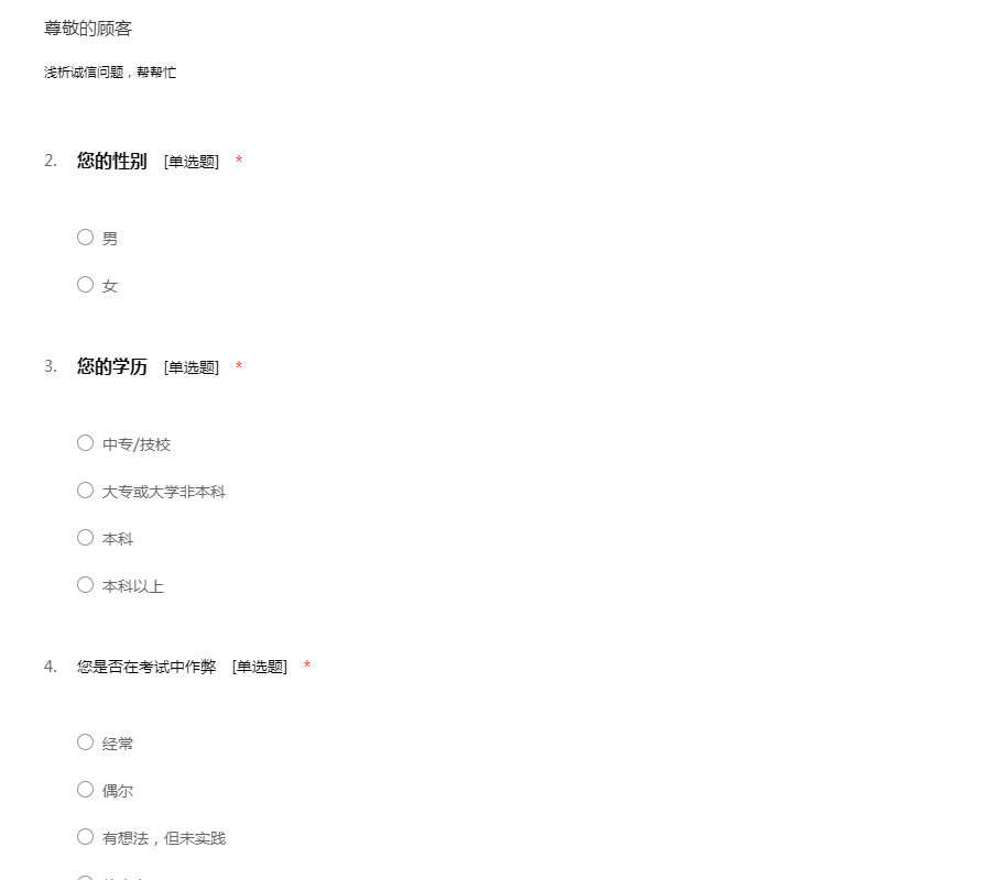本次问卷调查意在了解当代大学生的恋爱实际情况,您的真实回答对我们来说十分宝贵!感谢您在百忙之中回答此卷!51调查网(我要调查网)谢谢您的参与。