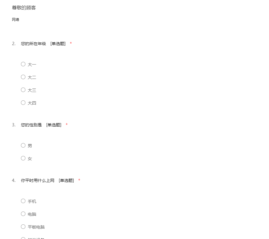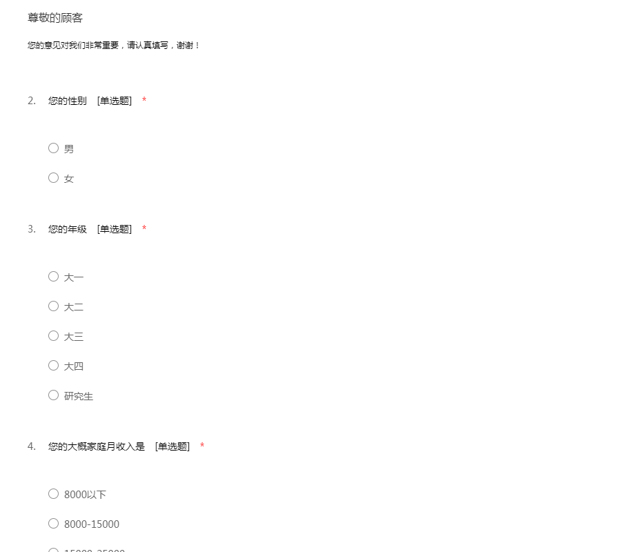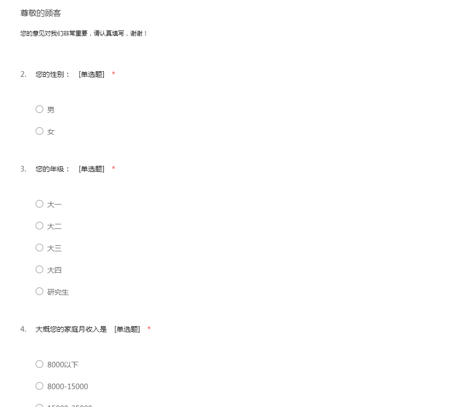 您好!为了更好的了解手机消费的需求我们特地展开了此次手机使用习惯调查活动。希望您在百忙之中抽出一点宝贵的时间协助我们完成以下这份调查问卷。谢谢您的合作!