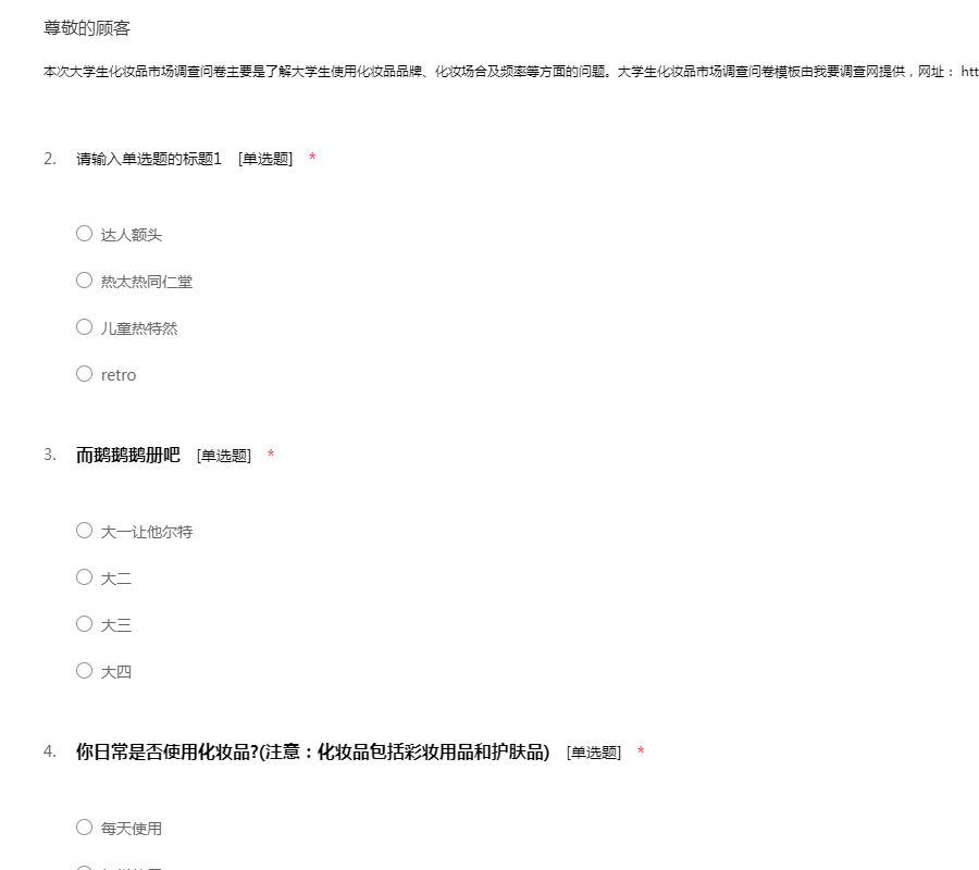 本次大学生化妆品市场调查问卷主要是了解大学生使用化妆品品牌、化妆场合及频率等方面的问题。大学生化妆品市场调查问卷模板由我要调查网提供,网址: http://www.51diaocha.com