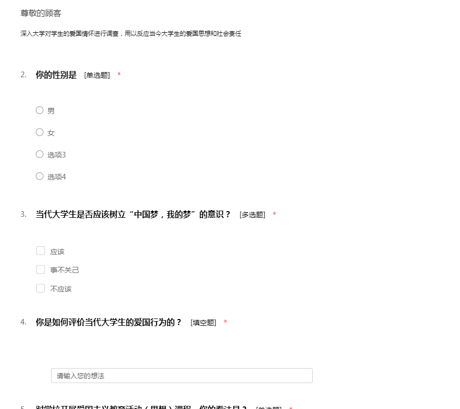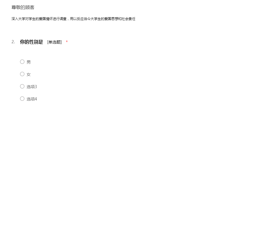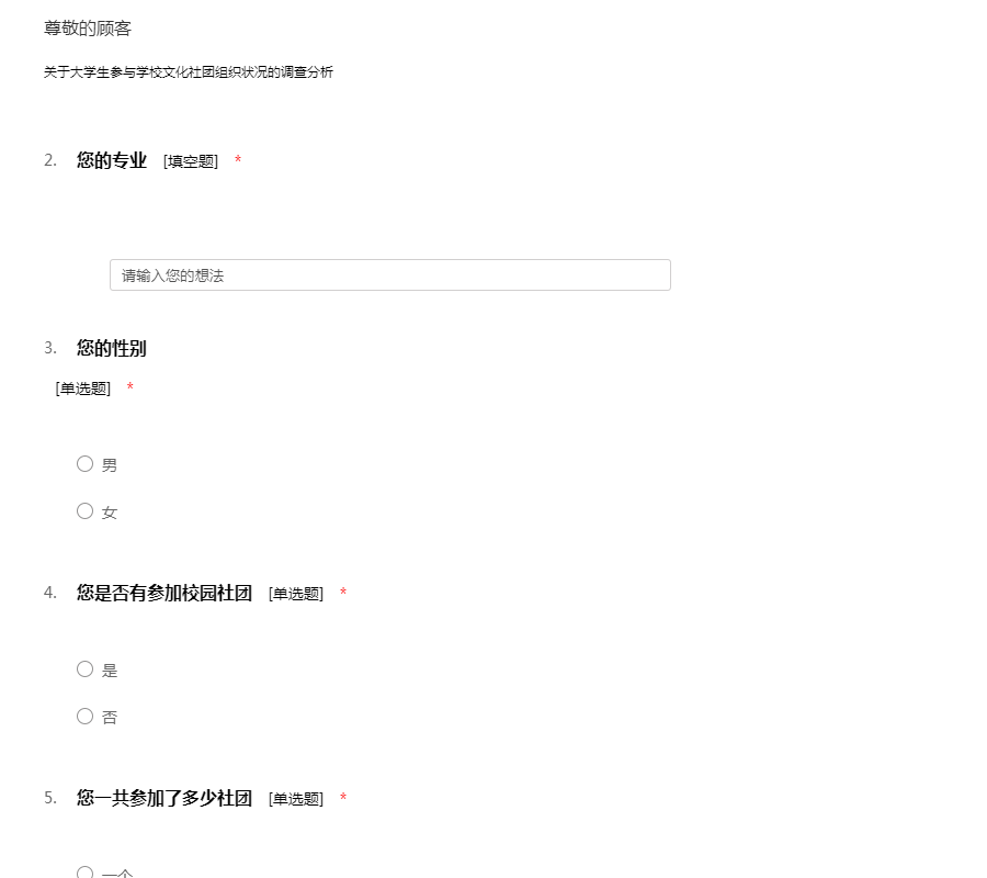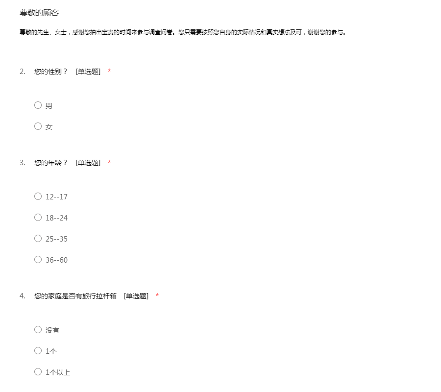 尊敬的先生、女士,感谢您抽出宝贵的时间来参与调查问卷。您只需要按照您自身的实际情况和真实想法及可,谢谢您的参与。