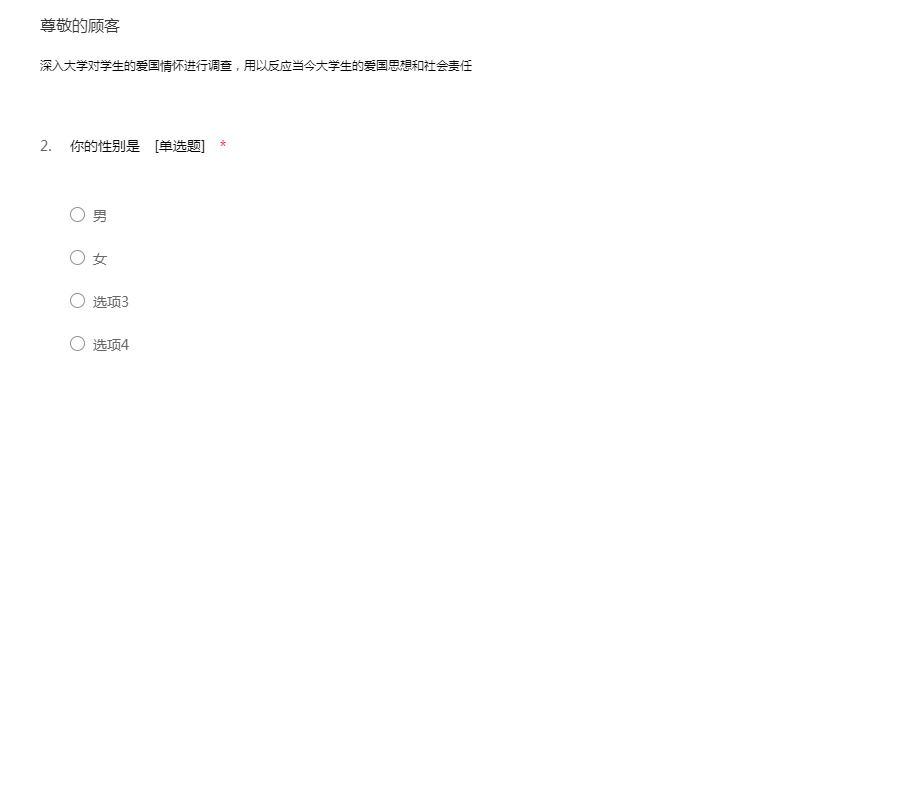 本次问卷调查意在了解当代大学生的恋爱实际情况,您的真实回答对我们来说十分宝贵!感谢您在百忙之中回答此卷!51调查网(我要调查网)谢谢您的参与。