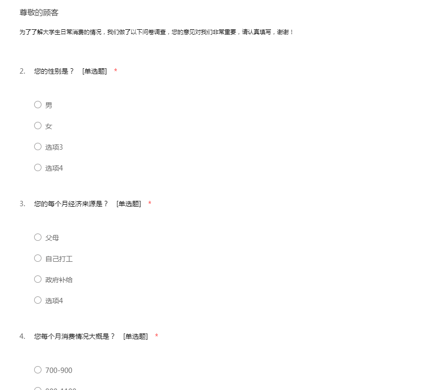 为了了解大学生日常消费的情况,我们做了以下问卷调查,您的意见对我们非常重要,请认真填写,谢谢!