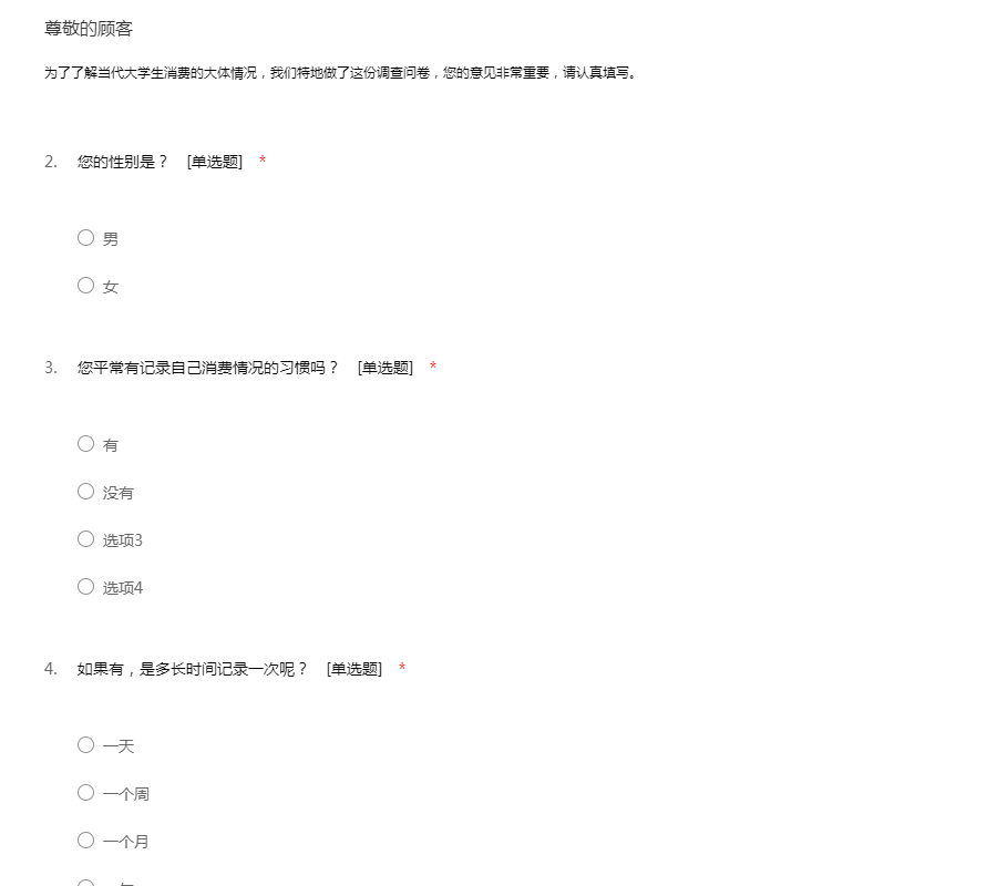 为了了解当代大学生消费的大体情况,我们特地做了这份调查问卷,您的意见非常重要,请认真填写。