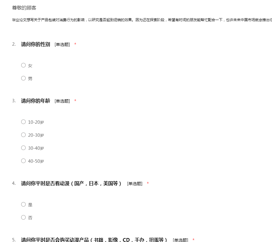 毕业论文想写关于产品包装对消费行为的影响,以研究是否起到促销的效果。因为还在探索阶段,希望有时间的朋友能帮忙配合一下,也许未来中国市场就会推出你喜欢的动漫人物产品也说不定哦。谢谢!!