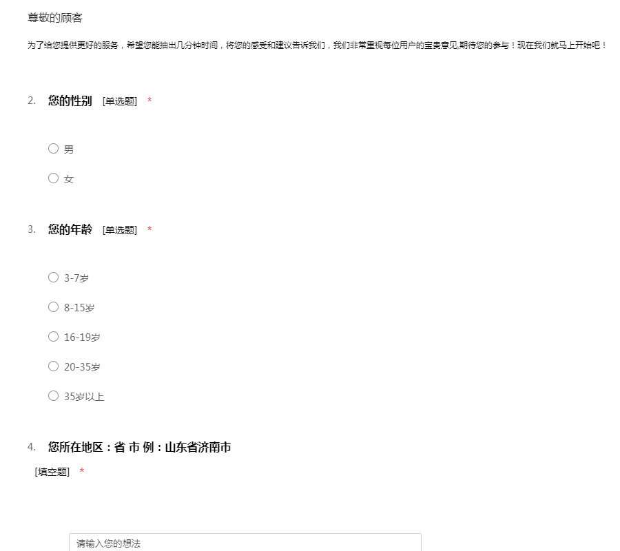 为了给您提供更好的服务,希望您能抽出几分钟时间,将您的感受和建议告诉我们,我们非常重视每位用户的宝贵意见,期待您的参与!现在我们就马上开始吧!