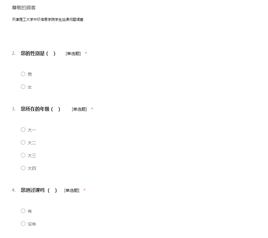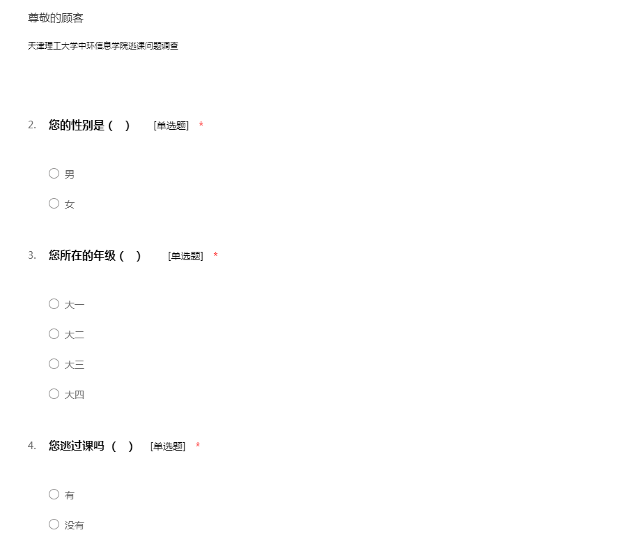 关于大学生逃课问题调查问卷