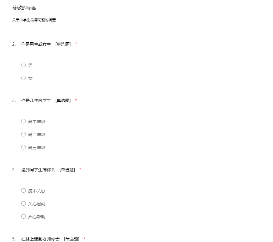 本次问卷调查意在了解当代大学生的恋爱实际情况,您的真实回答对我们来说十分宝贵!感谢您在百忙之中回答此卷!51调查网(我要调查网)谢谢您的参与。