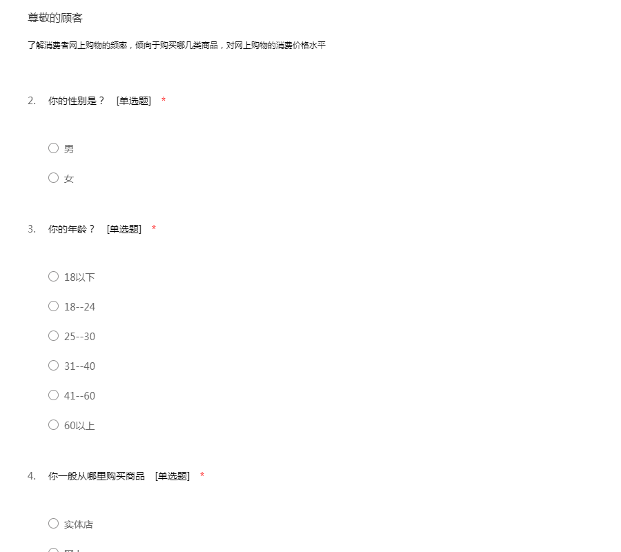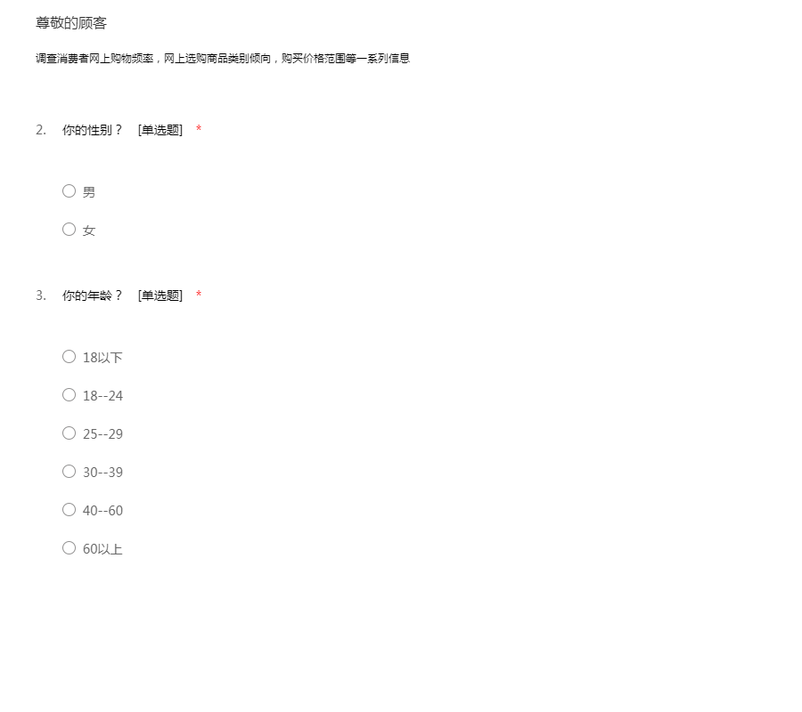 调查消费者网上购物频率,网上选购商品类别倾向,购买价格范围等一系列信息