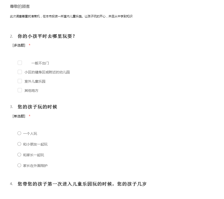 此次调查着重找准商机,在本市投资一所室内儿童乐园。让孩子玩的开心,并且从中学到知识