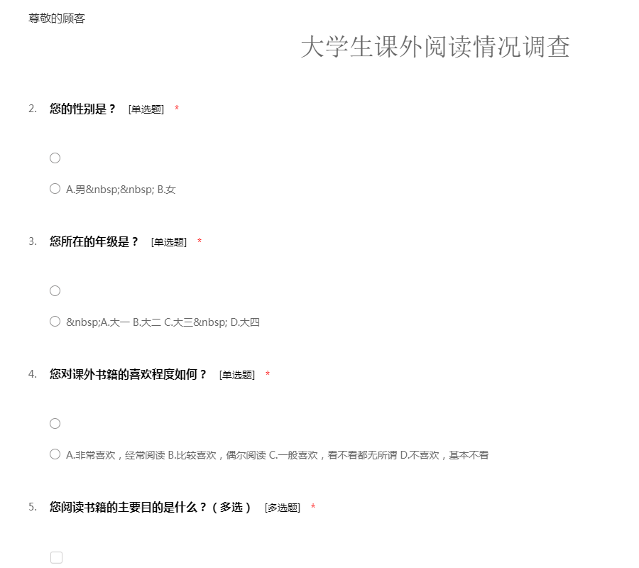 本次问卷调查意在了解当代大学生的恋爱实际情况,您的真实回答对我们来说十分宝贵!感谢您在百忙之中回答此卷!51调查网(我要调查网)谢谢您的参与。