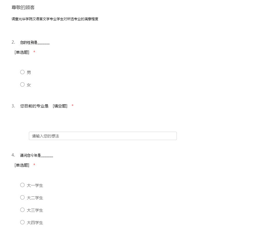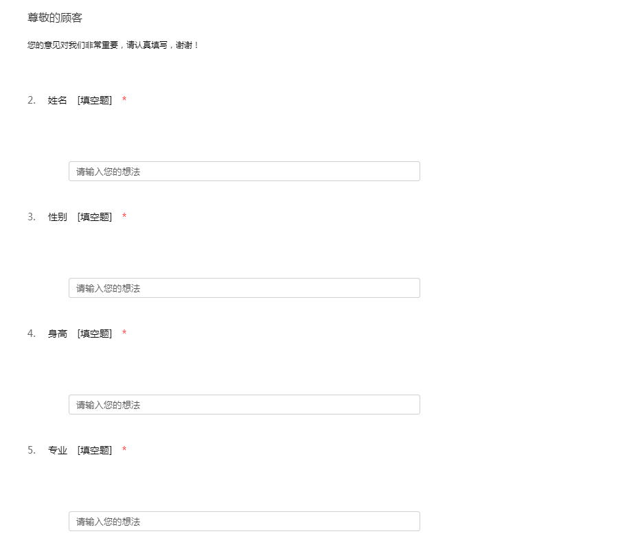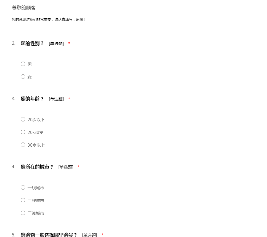 您的意见对我们很有帮助,希望您认真填写,谢谢!