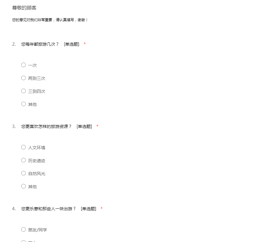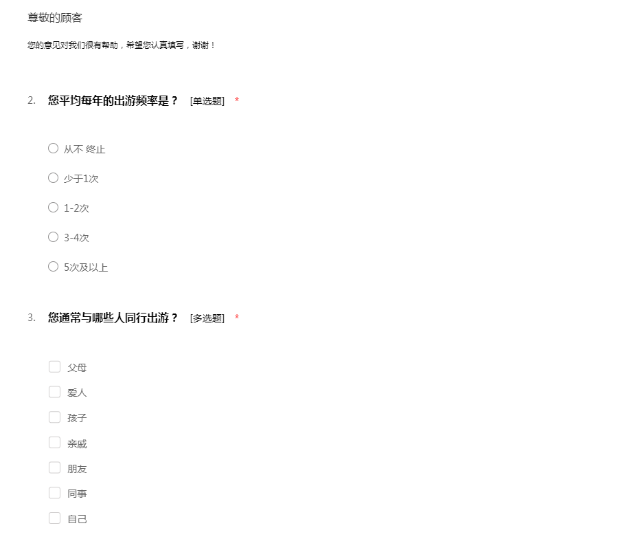 感谢您参与“企业内部员工对奖励旅游的偏好研究调查问卷”,本次调查为完成企业内部员工对奖励旅游的偏好研究,调查内容和调查结果都只用于教学研究,绝不外泄,请放心填写!51调查网感谢您的配合!