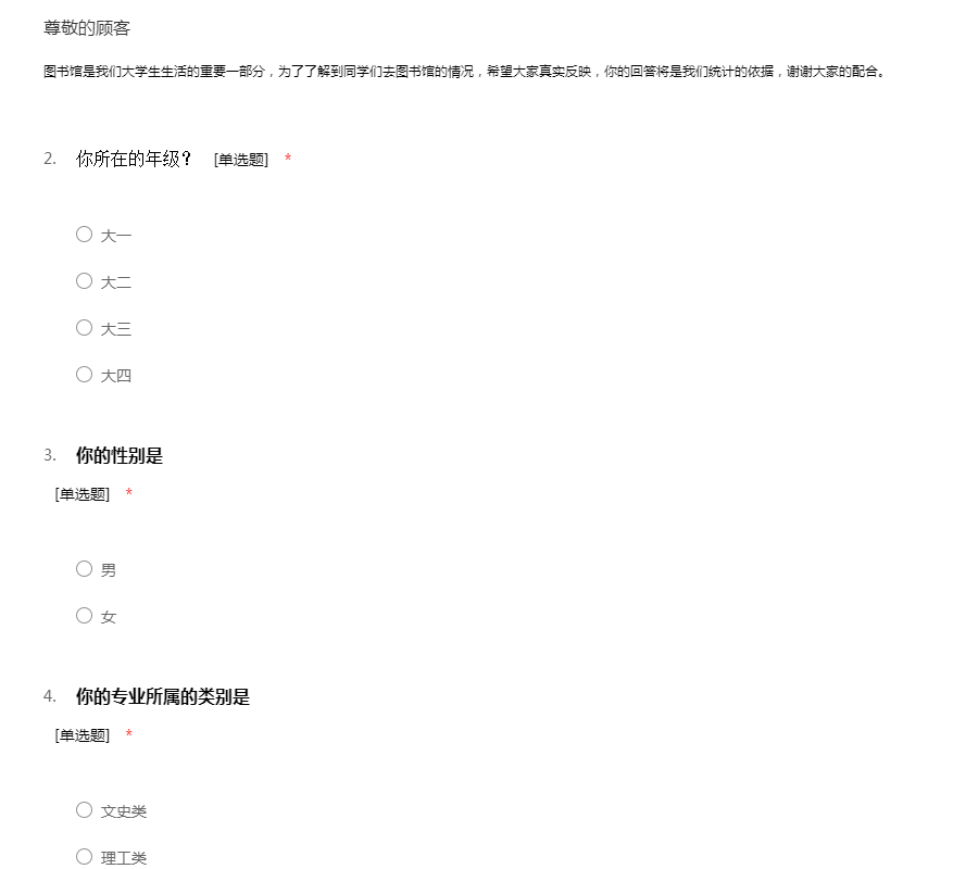 图书馆是我们大学生生活的重要一部分,为了了解到同学们去图书馆的情况,希望大家真实反映,你的回答将是我们统计的依据,谢谢大家的配合。