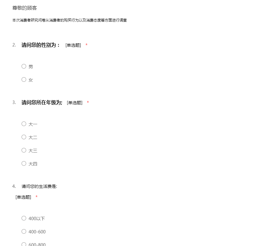 本次消费者研究问卷从消费者的购买行为以及消费态度等方面进行调查