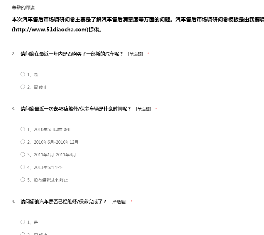 本次汽车售后市场调研问卷主要是了解汽车售后满意度等方面的问题。汽车售后市场调研问卷模板是由我要调查网(http://www.51diaocha.com)提供。