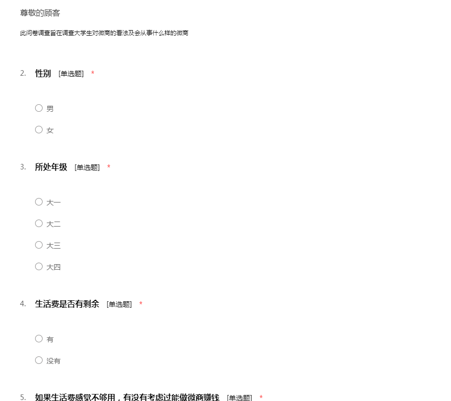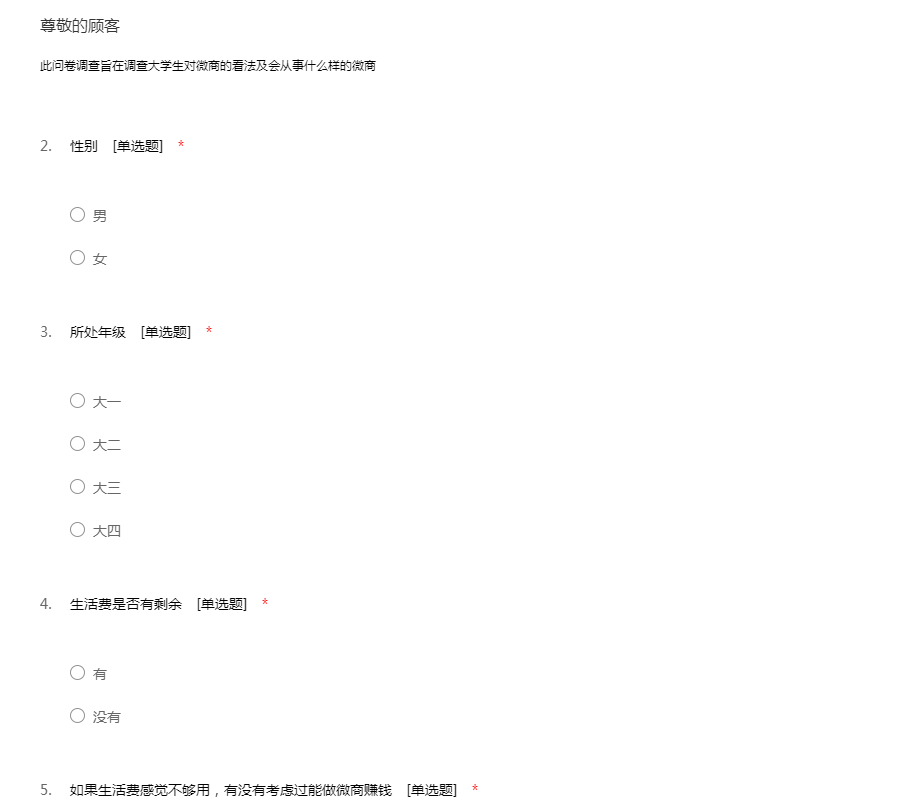 此问卷调查旨在调查大学生对微商的看法及会从事什么样的微商