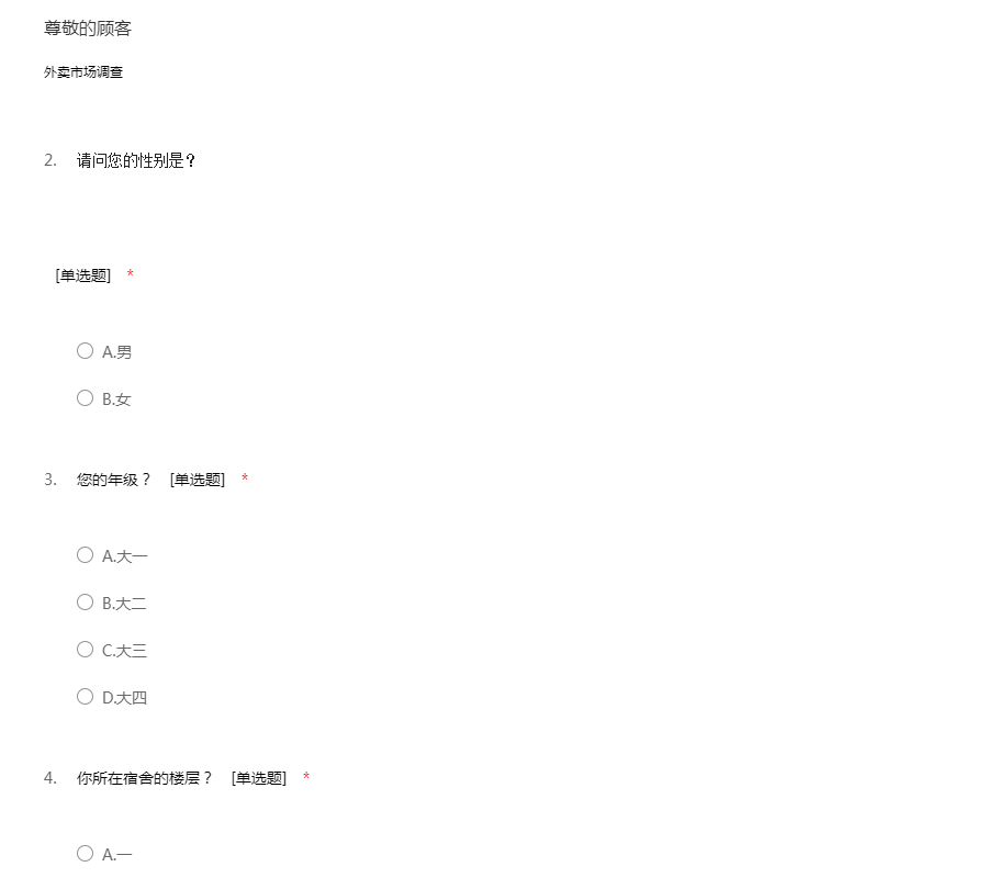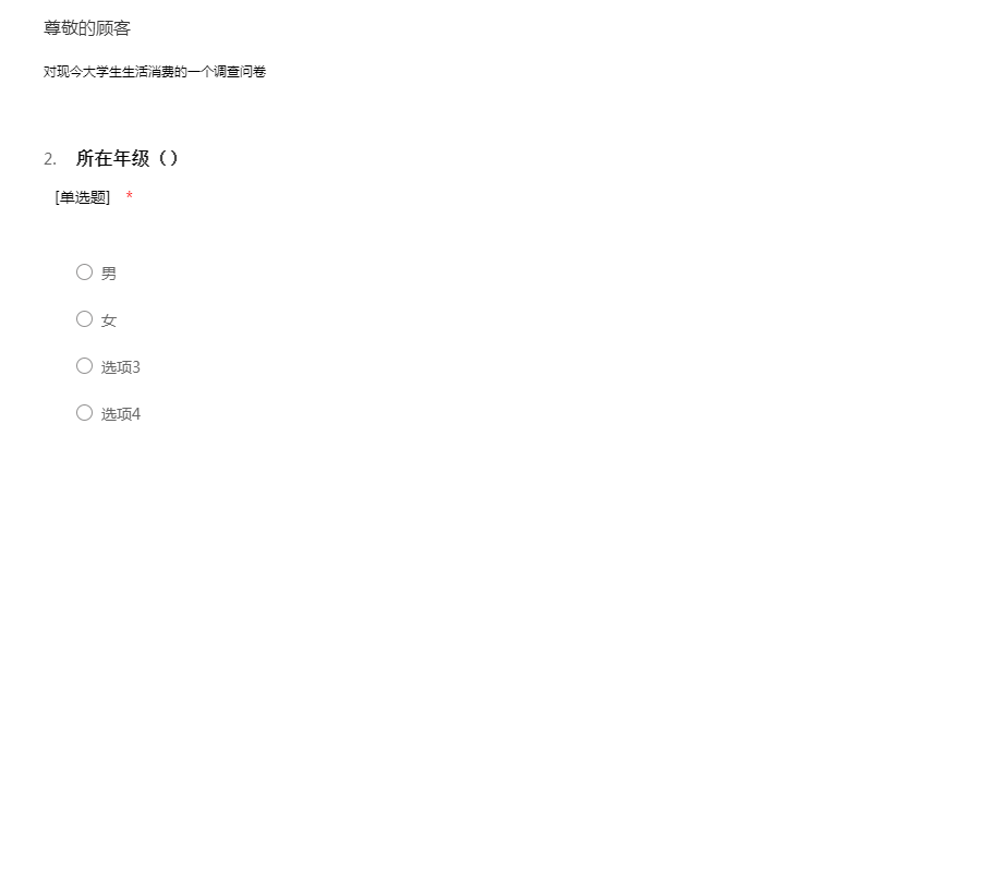 您好,感谢您参与现代大学生月消费问卷调查,请真实反映您个人的情况和想法。该问卷是匿名的,数据将完全用于市场研究,并得到严格保密。请勿泄露任何敏感或机密的信息。祝您身体健康,学业有成!