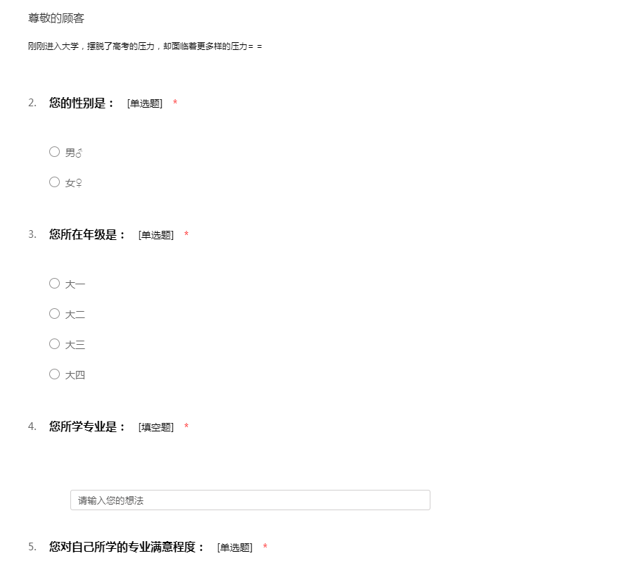 本次问卷调查意在了解当代大学生的恋爱实际情况,您的真实回答对我们来说十分宝贵!感谢您在百忙之中回答此卷!51调查网(我要调查网)谢谢您的参与。