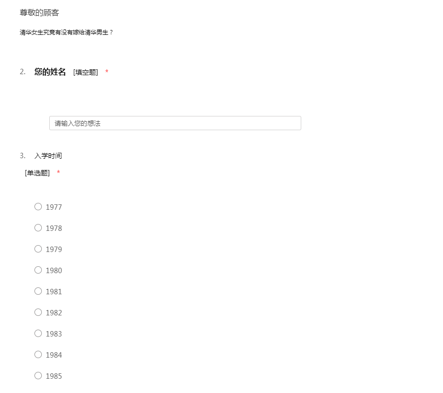 本次问卷调查意在了解当代大学生的恋爱实际情况,您的真实回答对我们来说十分宝贵!感谢您在百忙之中回答此卷!51调查网(我要调查网)谢谢您的参与。