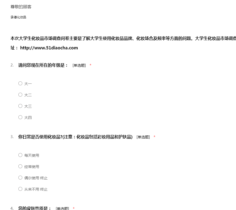 为调查日常护肤品使用习惯,对护肤品市场做进 一步的了解和研究,特开展本次“护肤品使用习惯市场调查问卷”,谢谢!(回答完毕,“品蓝之家”将送您一份小礼品作为感谢!)