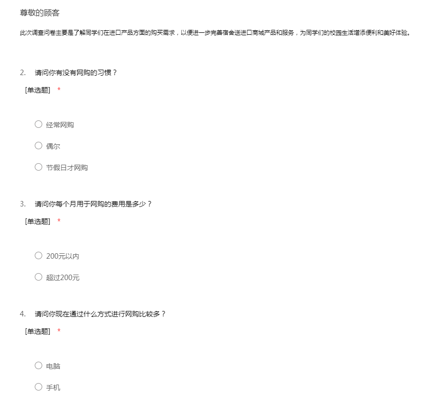 此次调查问卷主要是了解同学们在进口产品方面的购买需求,以便进一步完善宿舍送进口商城产品和服务,为同学们的校园生活增添便利和美好体验。