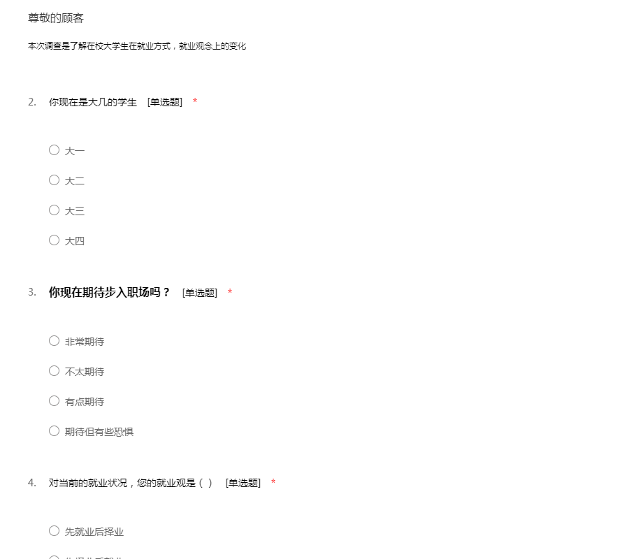 本次调查是了解在校大学生在就业方式,就业观念上的变化