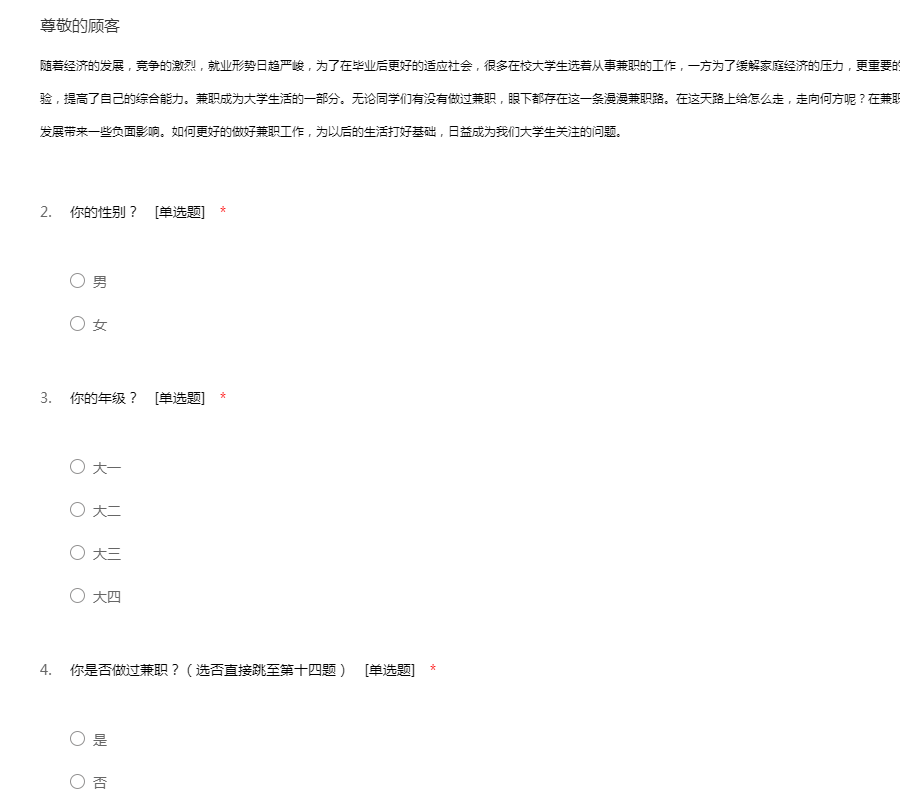随着经济的发展,竞争的激烈,就业形势日趋严峻,为了在毕业后更好的适应社会,很多在校大学生选着从事兼职的工作,一方为了缓解家庭经济的压力,更重要的是在一定程度上接触了社会,获取了一些工作经验,提高了自己的综合能力。兼职成为大学生活的一部分。无论同学们有没有做过兼职,眼下都存在这一条漫漫兼职路。在这天路上给怎么走,走向何方呢?在兼职工作遇到的一些困难和挫折可能对部分大学生的发展带来一些负面影响。如何更好的做好兼职工作,为以后的生活打好基础,日益成为我们大学生关注的问题。