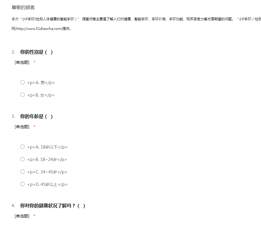 本次“小P手环(检测人体健康的智能手环)” 调查问卷主要是了解人们对健康、智能手环、手环价格、手环功能、购买承受力等方面期望的问题。“小P手环(检测人体健康的智能手环)” 调查问卷是由我要调查网(http://www.51diaocha.com)提供。