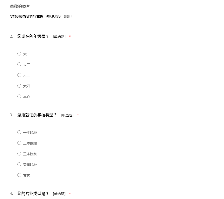 本次问卷调查意在了解当代大学生的恋爱实际情况,您的真实回答对我们来说十分宝贵!感谢您在百忙之中回答此卷!51调查网(我要调查网)谢谢您的参与。