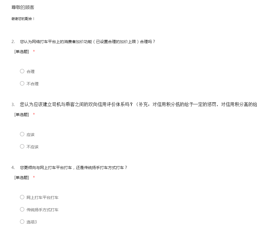 对消费者关于出租车方案的调查