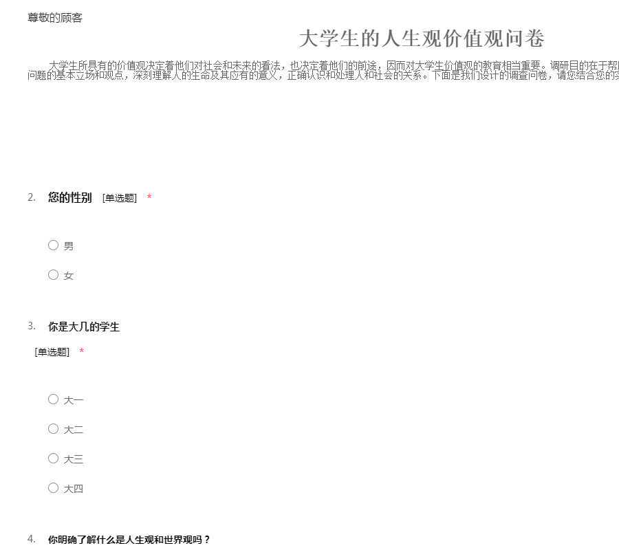 大学生的人生观价值观调查问卷