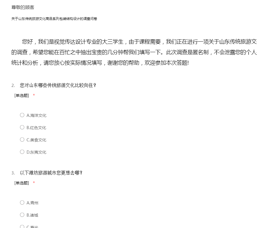 关于山东传统旅游文化商品系列包装结构设计的调查问卷