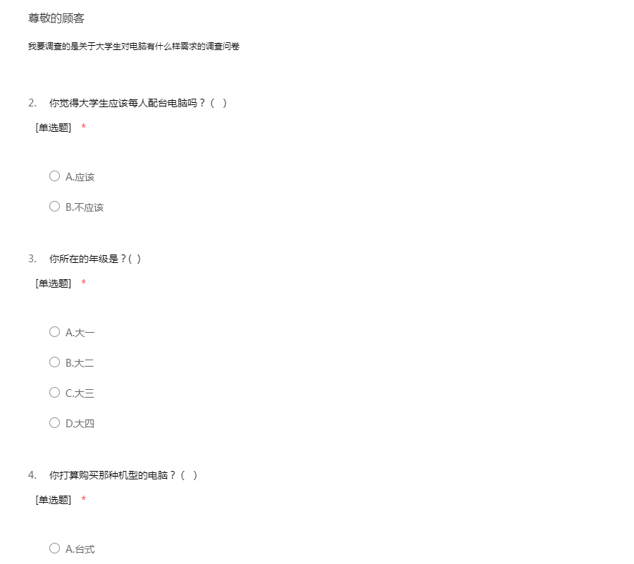 我要调查的是关于大学生对电脑有什么样需求的调查问卷