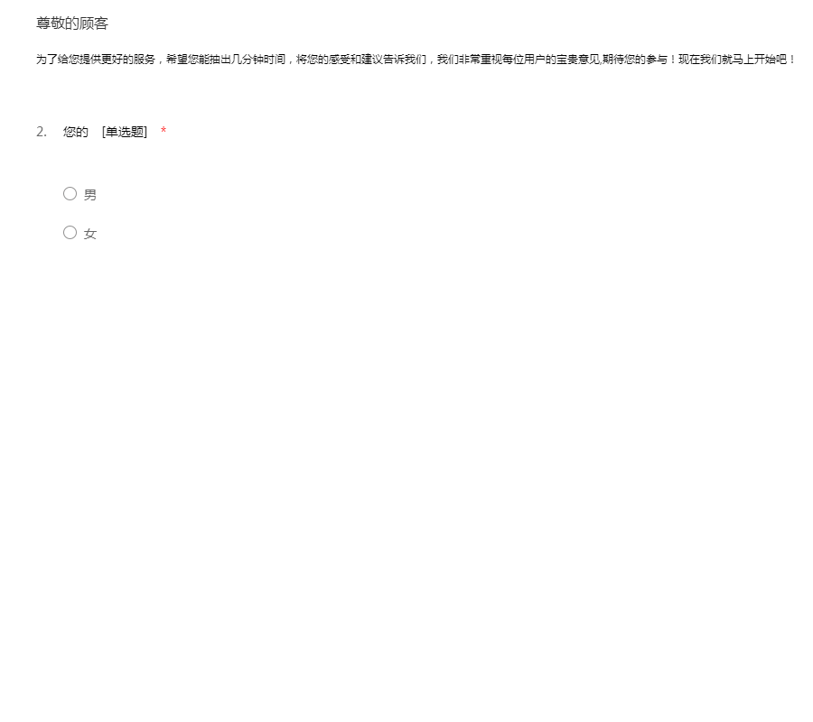 为了给您提供更好的服务,希望您能抽出几分钟时间,将您的感受和建议告诉我们,我们非常重视每位用户的宝贵意见,期待您的参与!现在我们就马上开始吧!