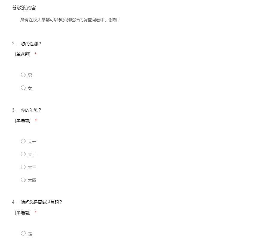 所有在校大学都可以参加到这次的调查问卷中。谢谢!